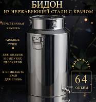 Бидон из нержавейки 64 л с краном…