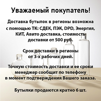 - Бутылки продаются кратно 6шт. Габариты товара (упаковка для транспортировки) - 35*35*45см, 5,33кг.