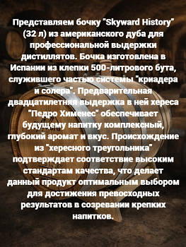 Дубовая Бочка 30-32 л Skyward History (американский дуб) из-под хереса Педро Хименез (Испания)