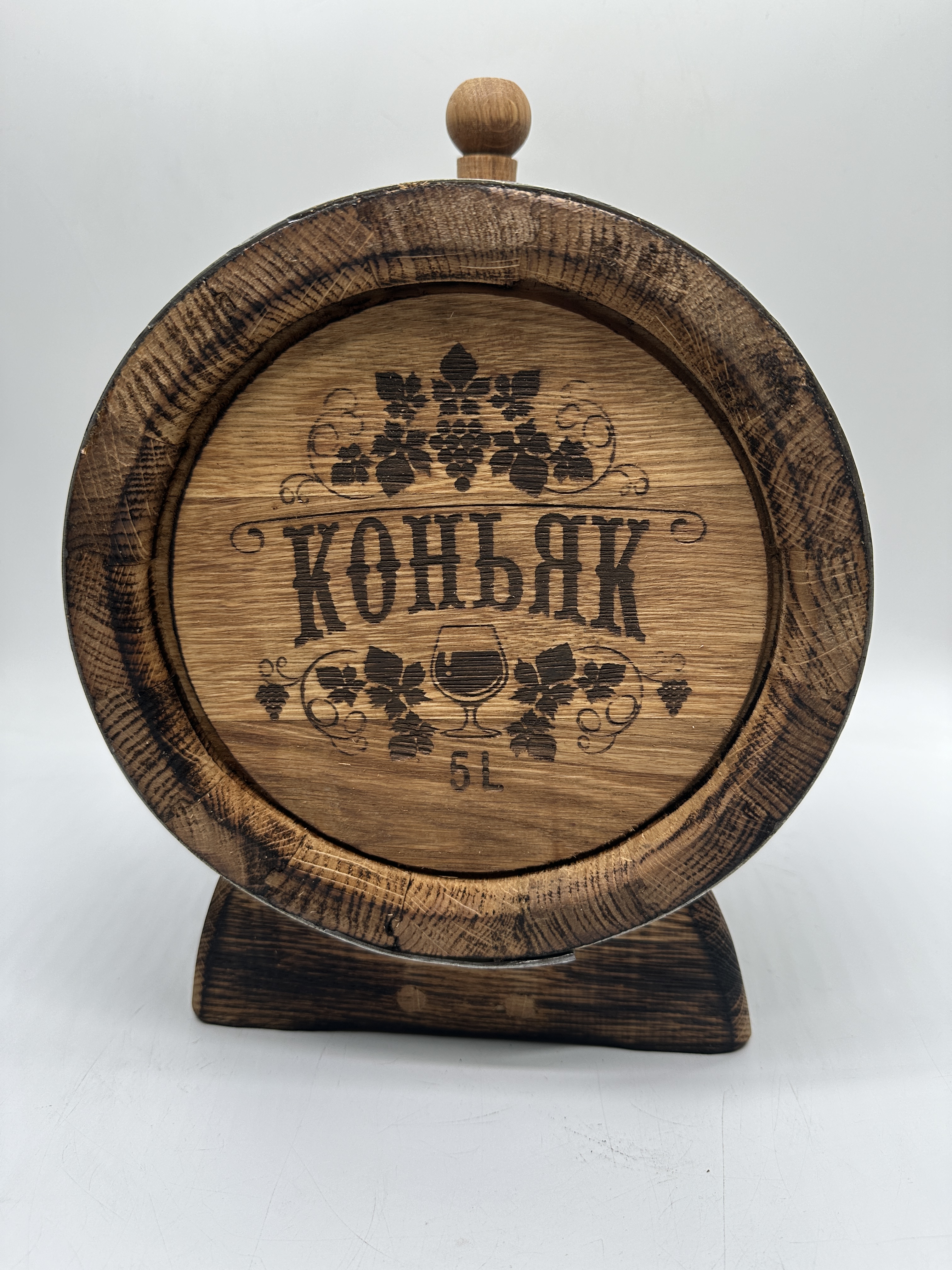 Дубовая бочка подарочная «КОНЬЯК» внешний обжиг 5 л (кавказский дуб)
