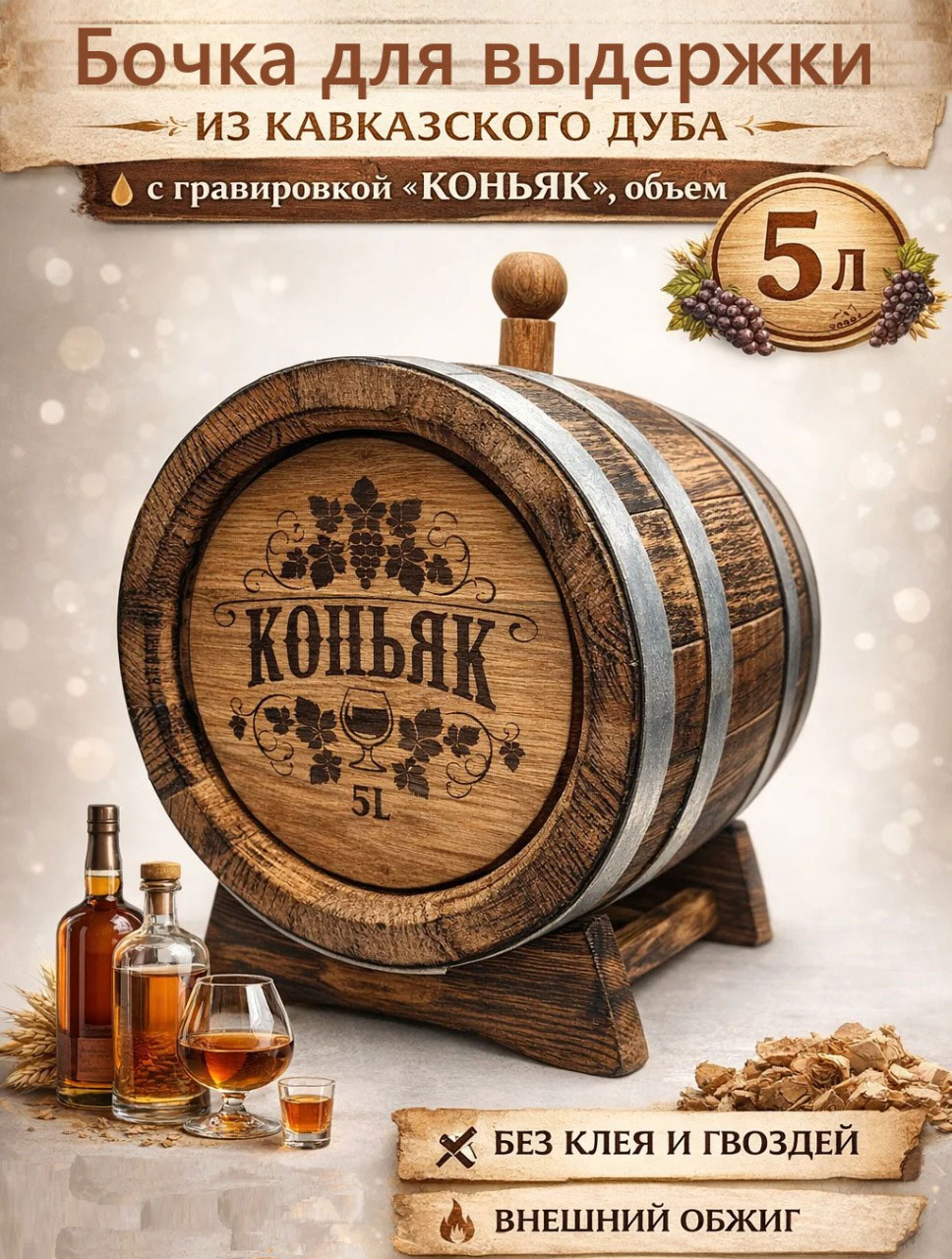 Отзывы о товаре Дубовая бочка 5 л подарочная «КОНЬЯК» внешний обжиг (кавказский дуб)