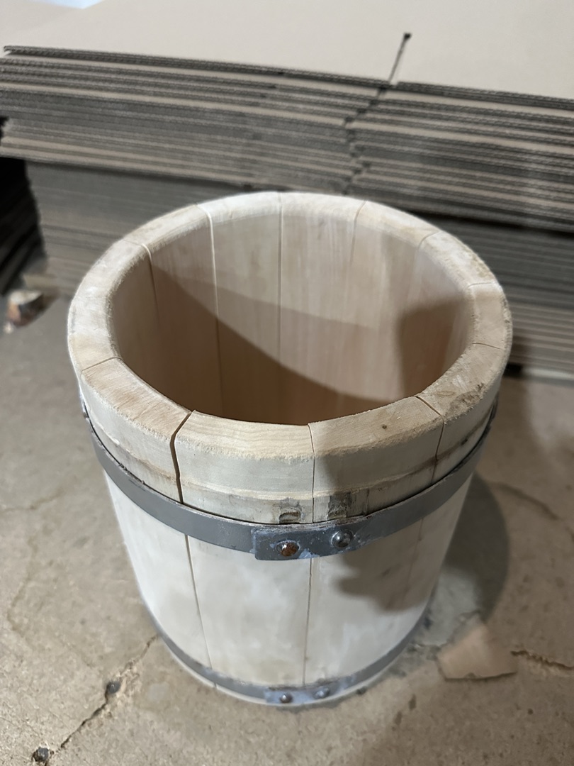 Причина уценки: кадка после вымачивания, присутствуют подтеки на поверхности. Перед использованием требуется вымачивание и подбитие обручей.