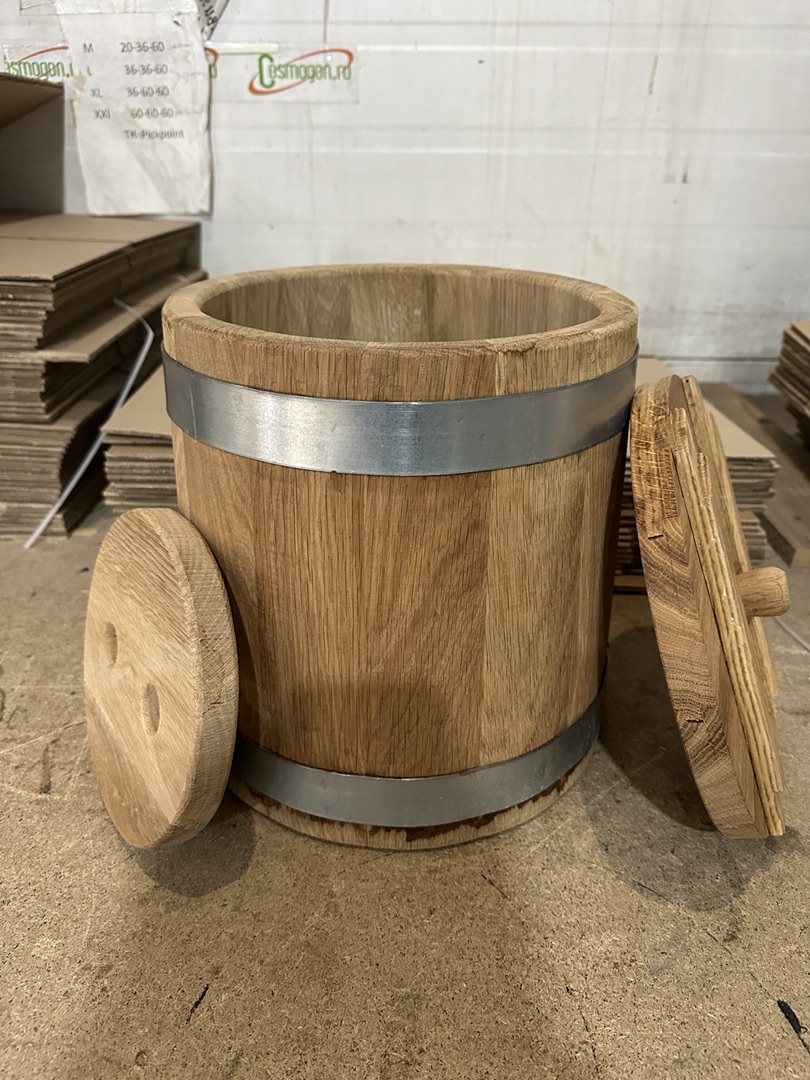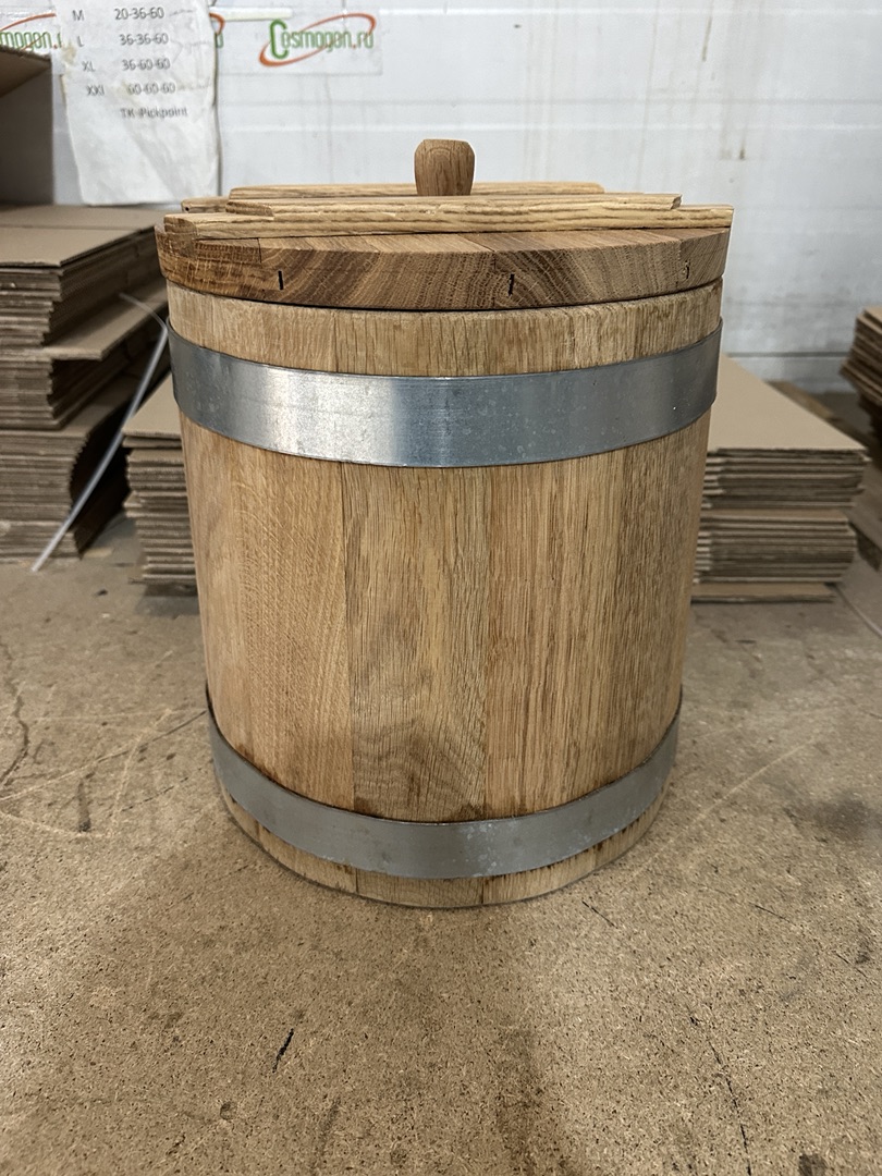 - Дубовая кадка, сделанная вручную, будет идеальным подарком для любителя солений и домашнего консервирования.
